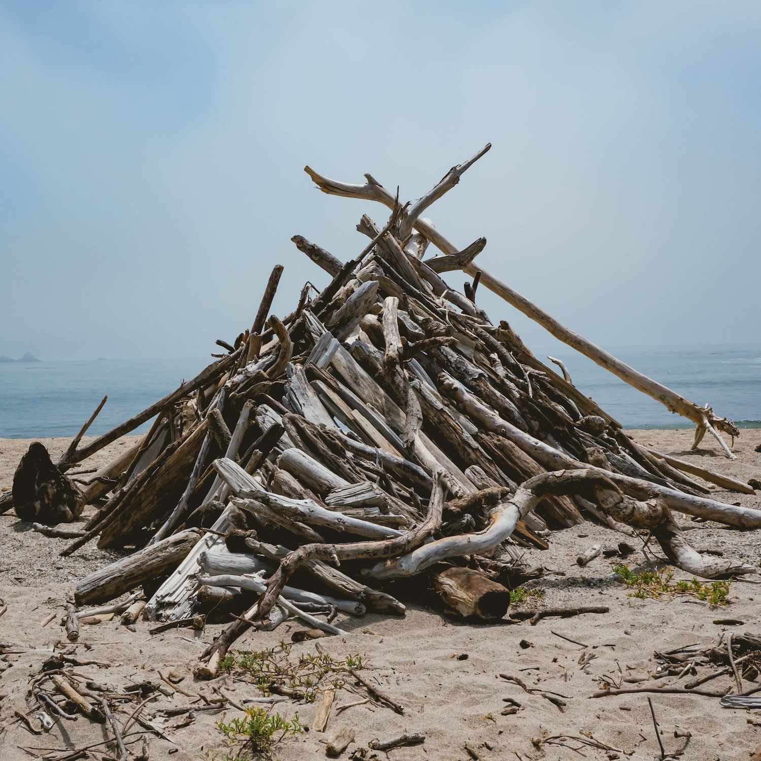 In 2019, after abandoning Sophomores and with life fully in the way, I changed jobs and needed to go to San Francisco for a new-job-onboarding thing. My wife & I made it into a little trip, rented a car & drove down the Pacific Coast Highway. We’d never been to places like Big Sur and it was wonderful. One of the beaches there had these weird wood structures all over that looked like small tents that one might rest in before taking a dive into the ocean. Somehow decrepit & meticulous & harrowing & exciting at once. She took a picture of one.